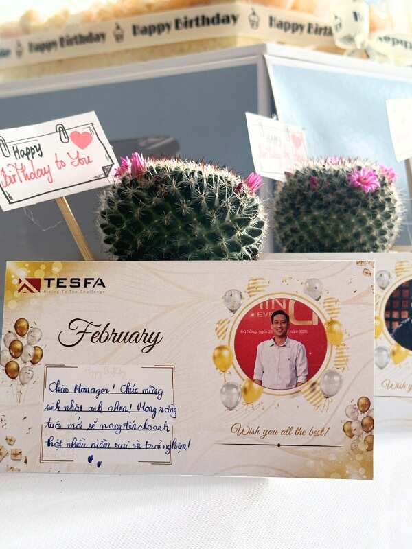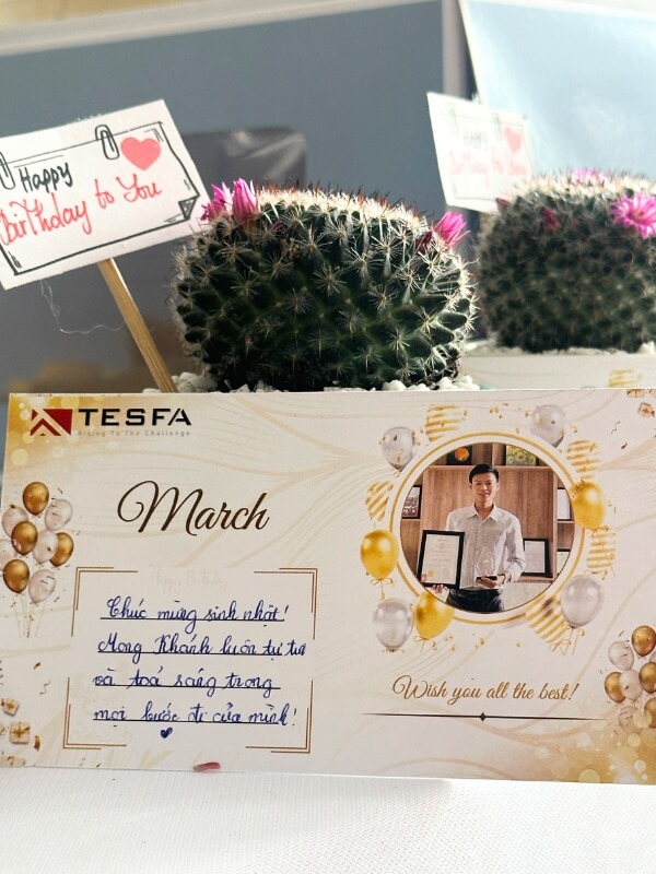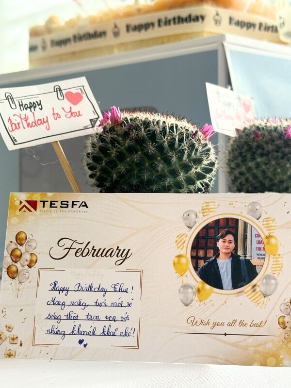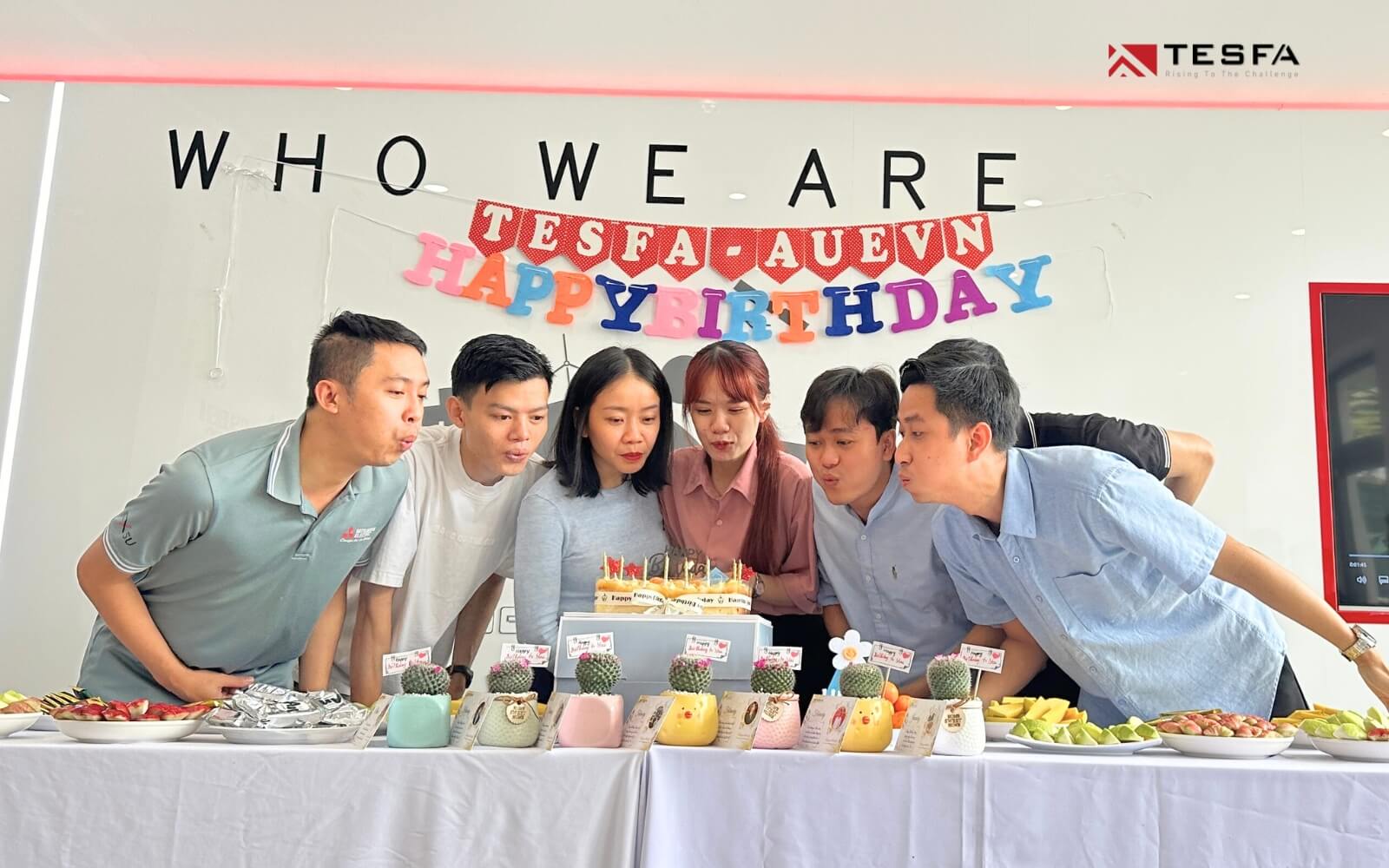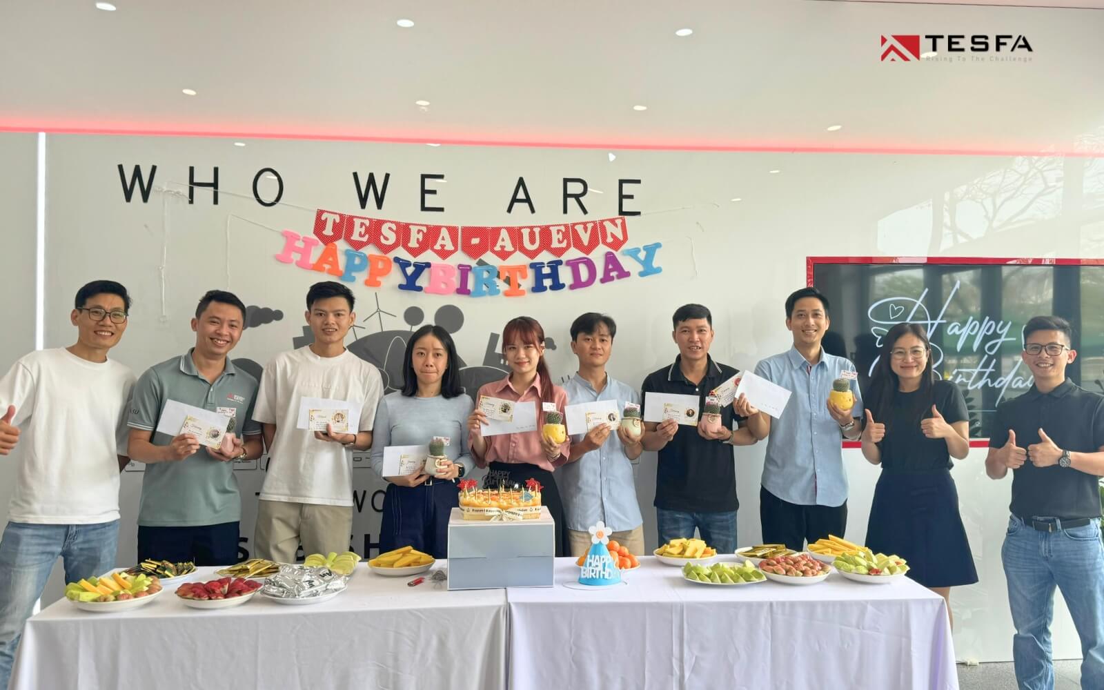 At TESFA, each birthday is not merely a personal milestone but also an opportunity for the entire team to come together, share joy, and strengthen bonds. In the first quarter of this year, TESFA hosted a warm and cozy birthday celebration for team members born during this period: Mr. Ngọc Thông, Mr. Ngọc Khánh, Mr. Lê Thìn, and Ms. Xuân Trâm.