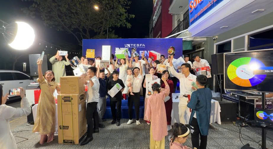 Bên cạnh đó, Vòng quay may mắn luôn là phần được mong chờ nhất của chương trình. Năm nay, Ban Lãnh đạo TESFA đã mang đến bất ngờ khi quyết định trao thưởng cho toàn bộ nhân sự trong công ty, từ nhân viên thử việc đến nhân viên chính thức.